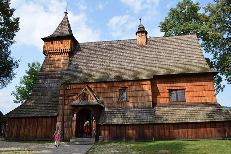 - Zabytkowy Kościółek w Dębnie – drewniana świątynia wpisana na listę UNESCO,
